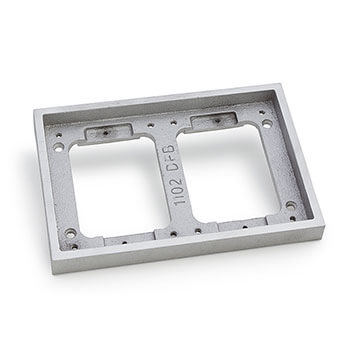 The Lew Electric 1102-DBE-A is a two gang tile frame made specifically for the 1100 Series of floor boxes and covers. The tile frame is a beautiful brushed aluminum color and provides the ability to have a flush finish on a tile or other hard surface floor. The frame measures 6.3″ x 4.3″.