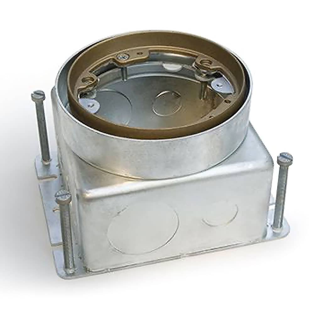 Round, deep, fully adjustable stamped steel floor box for commercial concrete applications.