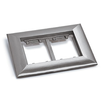Two gang brushed aluminum carpet flange for 1100 Series floor boxes.