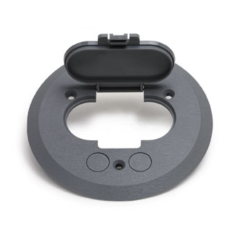4″ round brushed aluminum floor box cover with single flip lid, desig