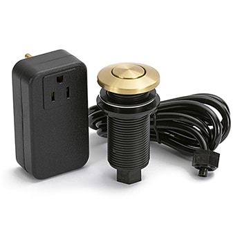 The PDAS-B air-activated switch provides a code-compliant and safe alternative to traditional wall switches, which can be hazardous when placed near sinks or wet surfaces. When you press the brass button, an air pulse travels through the tubing to the power controller, activating or deactivating your garbage disposal with ease. It eliminates the need for direct electrical contact, making it the safest way to control a disposal from a kitchen countertop or island.