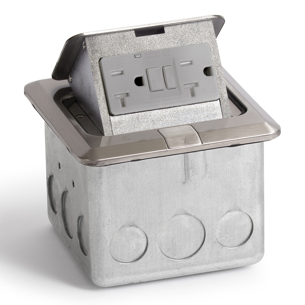 Square Pop-Up Floor Box (GFCI)- Stainless Cover
