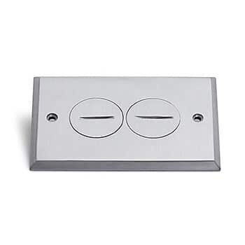 The Lew Electric RRP-2-SPA is a brushed aluminum replacement cover (cover only) for the PB1-SPA floor box. The cover features two 1 1/4″ screw plugs and includes a perimeter gasket and two 8/32 x 1/2″ cover screws.