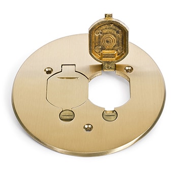 5 3⁄4″ brass flanged floor box floor box cover with two flip lids, designed for duplex outlet (receptacle) applications .