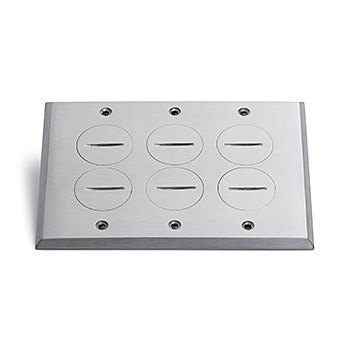 3 Gang Drop In Plastic Floor Box- Brushed Aluminum Cover