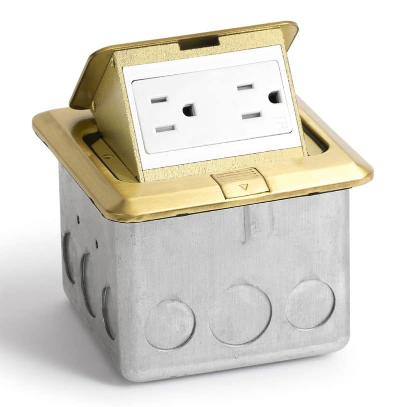 Square Pop-Up Floor Box (GFCI)- Brass Cover