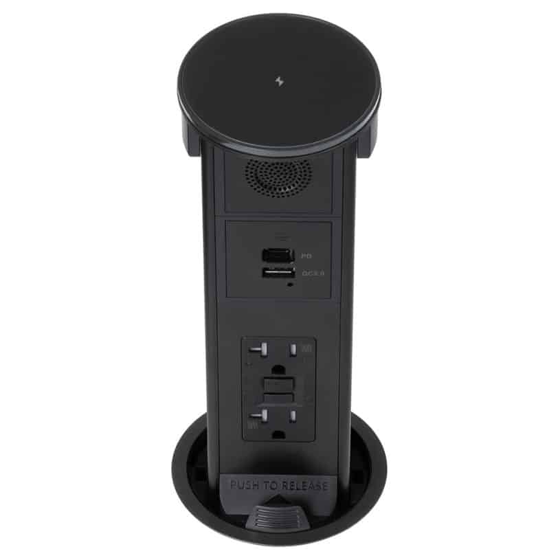 Wireless charging top, round kitchen countertop pop-up power assembly with