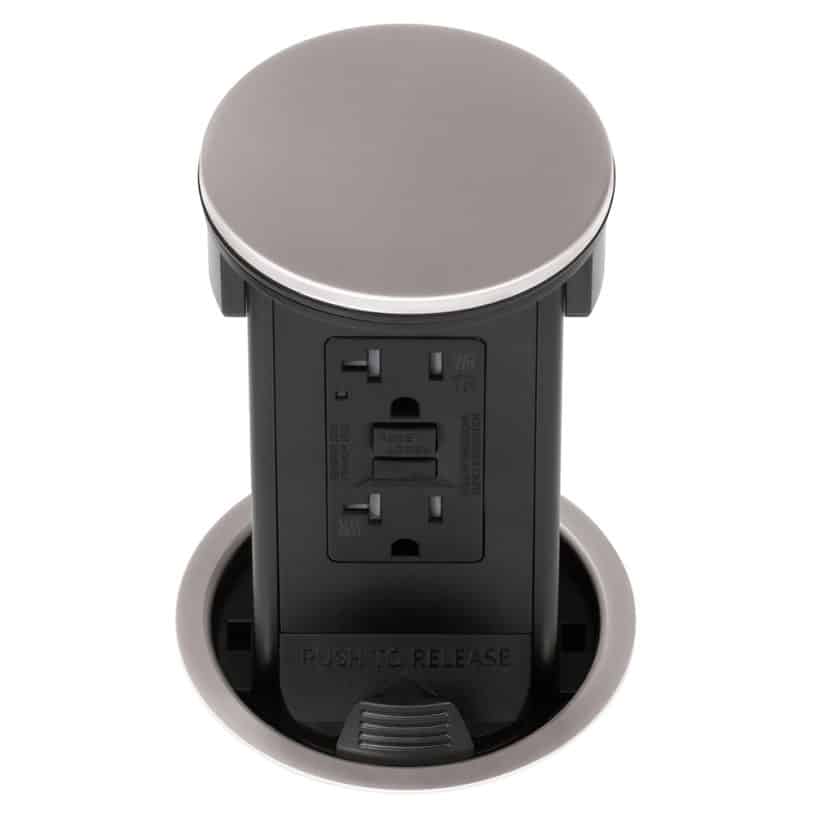Kitchen counter pop-up power outlet assembly with 20A (TR) Decora outlet (r