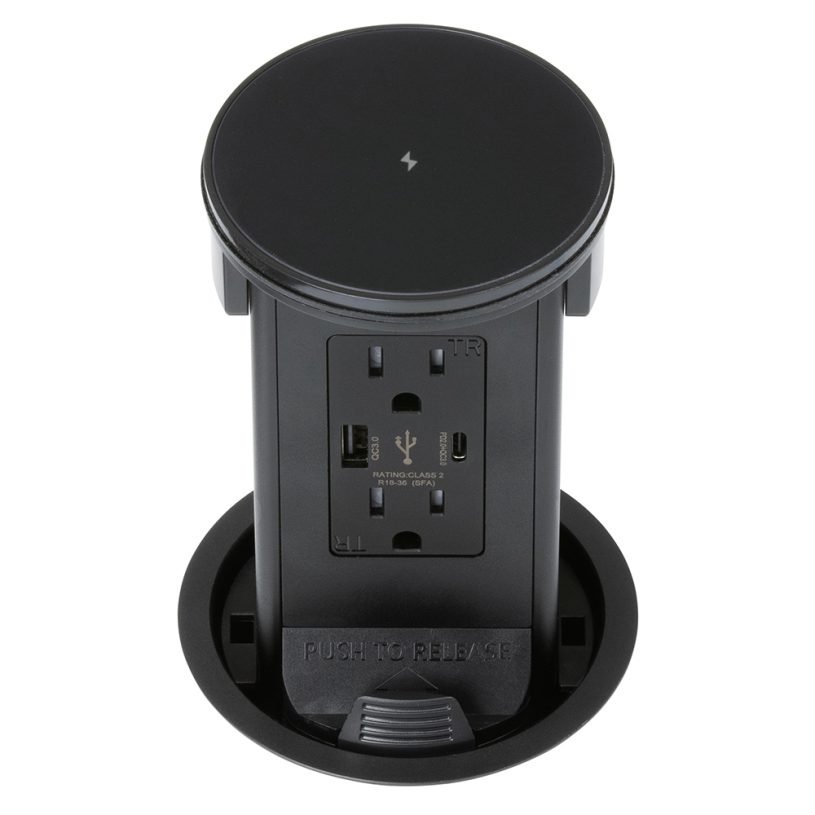 Wireless Charging Top, Round Kitchen Countertop Pop-Up Power Assembly With