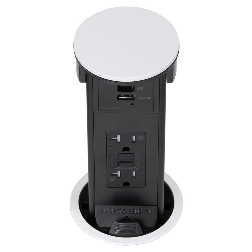 Kitchen Counter Pop-Up Power Outlet Assembly With 20A(TR) Decora Receptacle