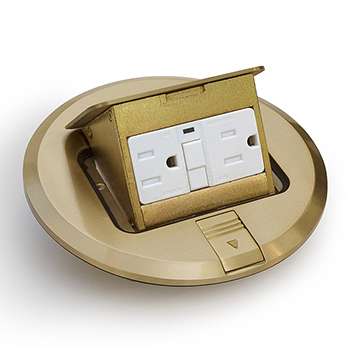 Six-Inch Round Brass Pop-Up Floor Plate With With 15A (TR) GFCI Receptacle