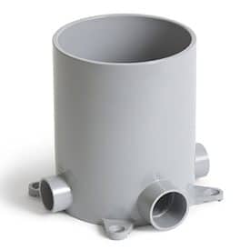 - Industry standard 5 inch round grey PVC box