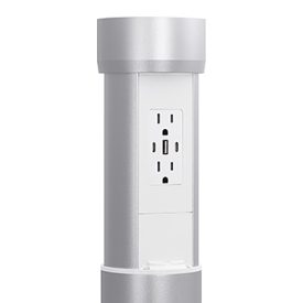 Round, Fully Automated, Kitchen Countertop Pop-Up With 15A(TR) Decora/3USB (CAC) White Receptacle And Silver Bezel