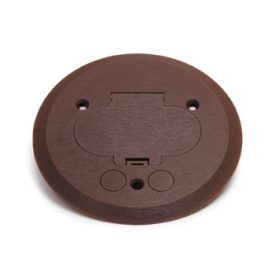 5 3/4-Inch Brown Plastic Flanged Cover With Single Flip Lid And Two Low Volt Cord Pass Through Openings