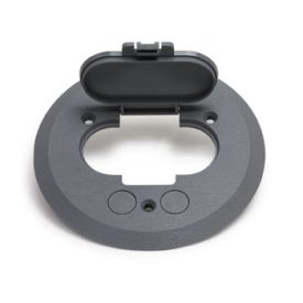 5 3/4 Inch Grey Plastic Flanged Cover With Single Flip Lid And Two Low Volt Cord Pass Through Openings