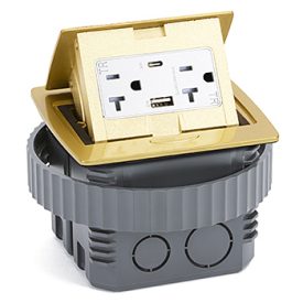 Kitchen Counter Pop-Up Power Outlet Assembly With 20A(TR) Decora/2USB(AC) Receptacle – Brass Metal Cover
