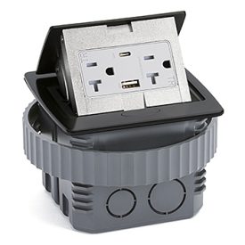 Kitchen Counter Pop-Up Power Outlet Assembly With 20A(TR) Decora/2USB(AC) Receptacle – Black Metal Cover