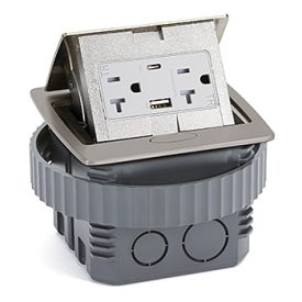 Kitchen Counter Pop-Up Power Outlet Assembly With 20A(TR) Decora/2USB(AC) Receptacle – Nickel Metal Cover