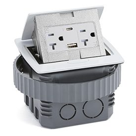 Kitchen Counter Pop-Up Power Outlet Assembly With 20A(TR) Decora/2USB(AC) Receptacle – White Metal Cover