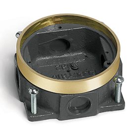 Round, Shallow, Die Cast Aluminum, Semi-Adjustable Concrete Floor Box With Brass Tile Frame