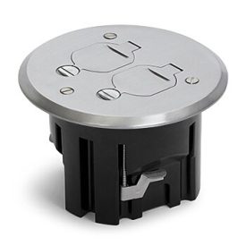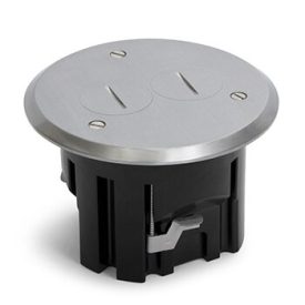 Round,Plastic Drop In Floor Box With Aluminum Dual Flip Lid Cover And 15A(TR) Duplex Receptacle