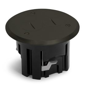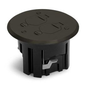 Round, Plastic Drop In Floor Box With Dark Bronze Screw Plug Cover And 15A(TR) Duplex Receptacle