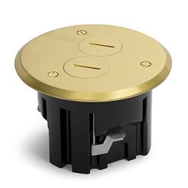 Round, Plastic Drop In Floor Box With Brass Screw Plug Cover And 15A(TR) Duplex Receptacle
