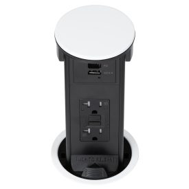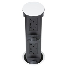 Round Kitchen Countertop Pop-Up Power Assembly With 20A(TR) GFCI Receptacle and Dedicated USB(A/C) Charging Ports- White Metal Cover