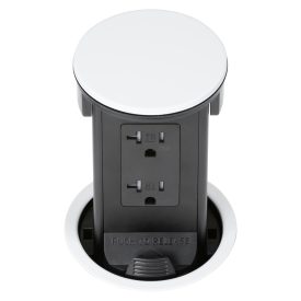Round Kitchen Countertop Pop-Up Power Assembly With 20A(TR) GFCI Receptacle- White Metal Cover