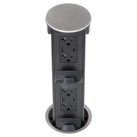 Round Kitchen Countertop Pop-Up Power Assembly (Two-Stage) With Two 20A(TR) Decora/2USB(A/C) Receptacles- Stainless Metal Cover