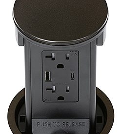 Round Kitchen Countertop Pop-Up Power Assembly With 20A(TR) Decora/2USB(A/C) Receptacle- Dark Bronze Metal Cover