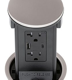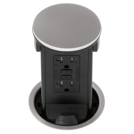 Round Kitchen Countertop Pop-Up Power Assembly With 20A(TR) Decora/2USB(A/C) Receptacle- Nickel Metal Cover