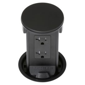 Round Kitchen Countertop Pop-Up Power Assembly With 20A(TR) Decora Receptacle- Black Metal Cover