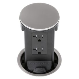 Round Kitchen Countertop Pop-Up Power Assembly With 20A(TR) Decora Receptacle- Stainless Metal Cover