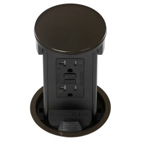 Round Kitchen Countertop Pop-Up Power Assembly With 20A(TR) GFCI Receptacle- Dark Bronze Metal Cover