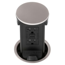 Round Kitchen Countertop Pop-Up Power Assembly With 20A(TR) GFCI Receptacle- Nickel Metal Cover